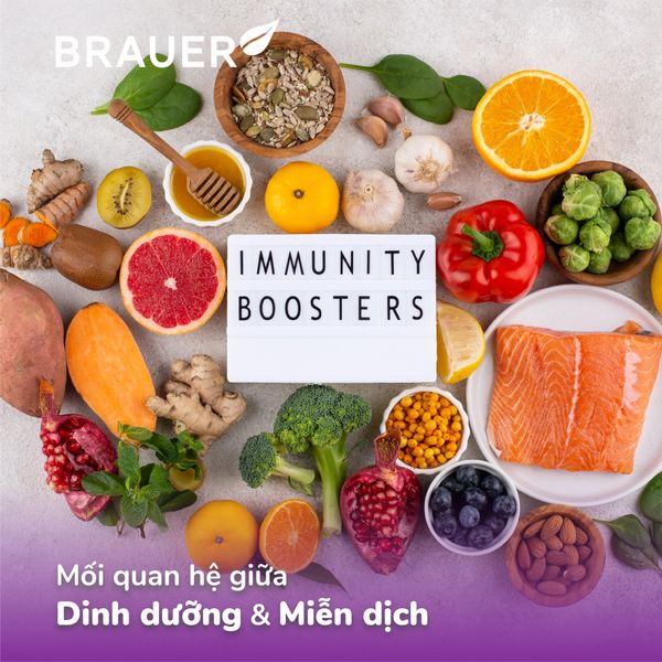 Dinh dưỡng và miễn dịch có mối liên kết chặt chẽ. Các chất dinh dưỡng được cung cấp cho cơ thể thông qua qua nguồn thực phẩm là chủ yếu, sau đó được hấp thu và chuyển hóa sinh năng lượng xây dựng cấu trúc cơ quan giúp cơ thể hoạt động, đồng thời tạo ra các yếu tố miễn dịch giúp tăng cường sức đề kháng.