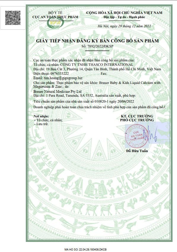 Thực phẩm bảo vệ sức khỏe Brauer Kids Liquid Calcium with Magnesium & Zinc