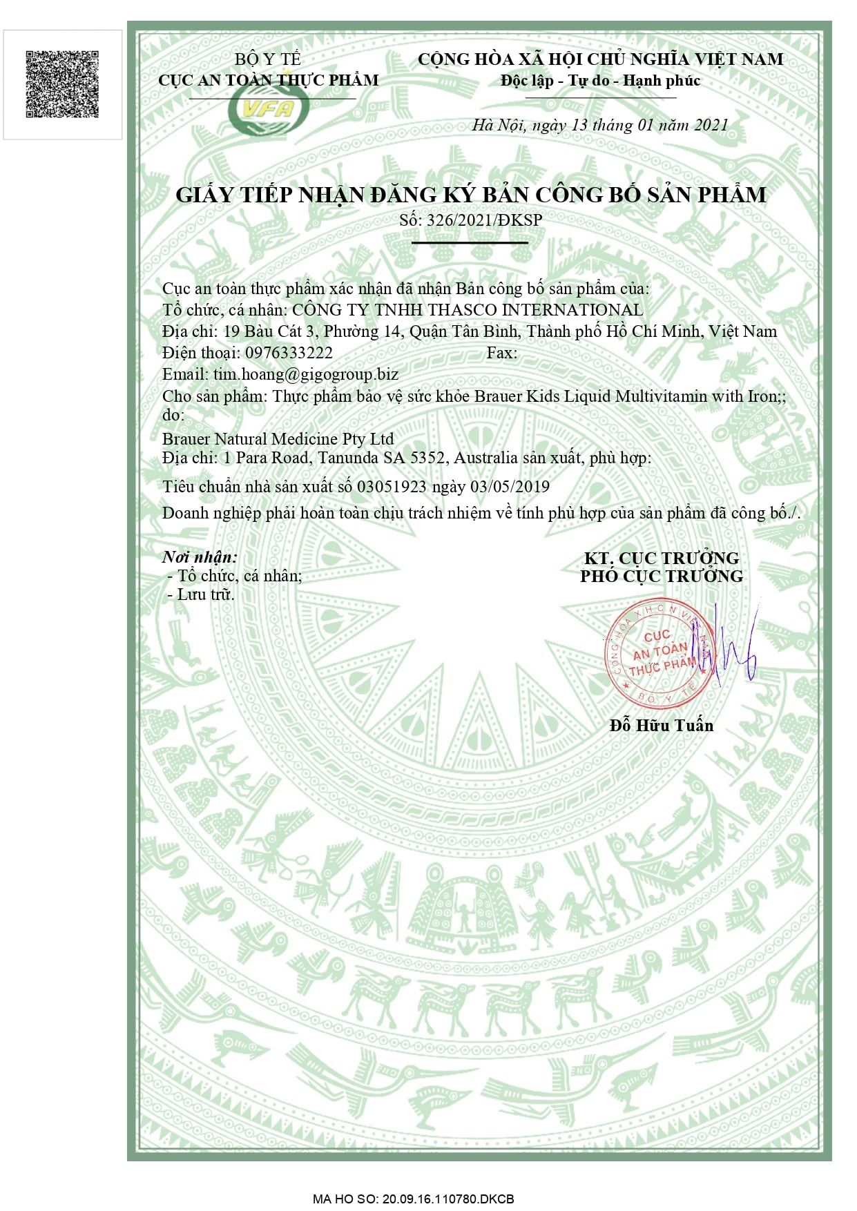 Số ĐKCB: 326/2021/ĐKSP
