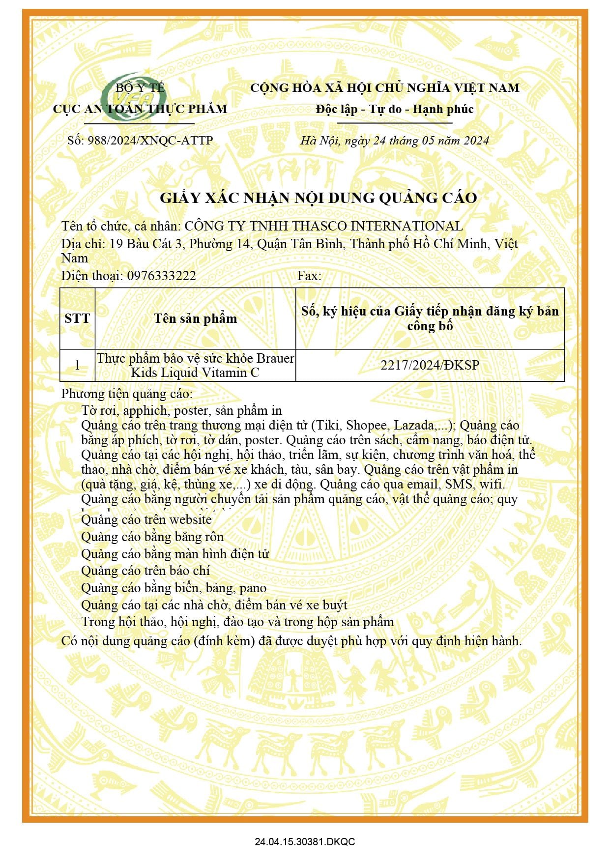 Thực phẩm bảo vệ sức khỏe Brauer Kids Liquid Vitamin C